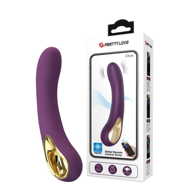 Vibrador recarregável com alça metalizada, levemente curvado na ponta para estimulação do ponto G. Possui 12 modos de vibração